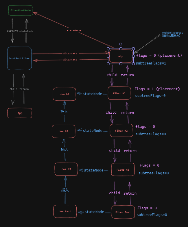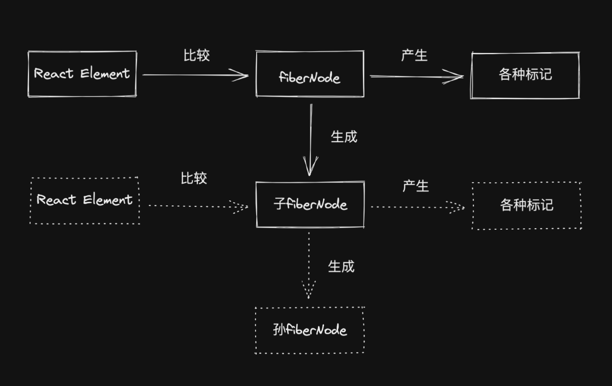 fiber对象是对react执行过程中元素状态的描述,打上一些标记等等